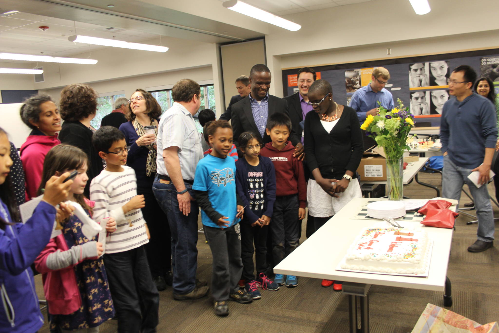 With a tight schedule as usual, we headed to Bellevue, where we met Elliot Neff with Chess4Life, Elliot is a self-taught chess master and started Chess4Life and has the goal to serve 100,000 children a week eventually. He took us to Open Window School, where the students had put together a slideshow about Phiona to introduce her. After Robert and Phiona spoke to the children and some parents, they played chess and signed cards and books for the students. Loi, a native Ugandan who lives in Seattle and son, Tendo plays in the chess program at Open Window surprised them with cake to celebrate her being there. Not sure what to do or say, Loi suggested we all sing Happy Birthday to Phiona, it was wonderful. After visiting awhile longer we headed out to Loi’s home where she had invited Robert, Phiona, SOI staff and several friends. Elliot was able to give Phiona some more lessons and they prepared traditional Ugandan food to make Robert and Phiona feel right at home. It was a wonderful day, very full, but every minute was full of such amazing opportunities.